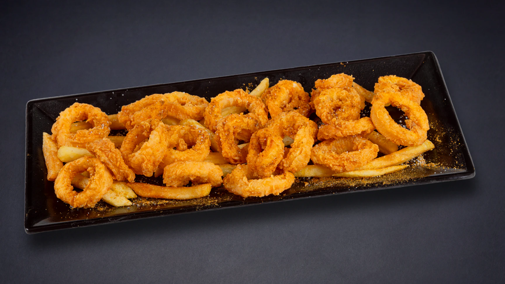 حلقات حبار طازجة متبلة بالأعشاب ومقلية بعناية.