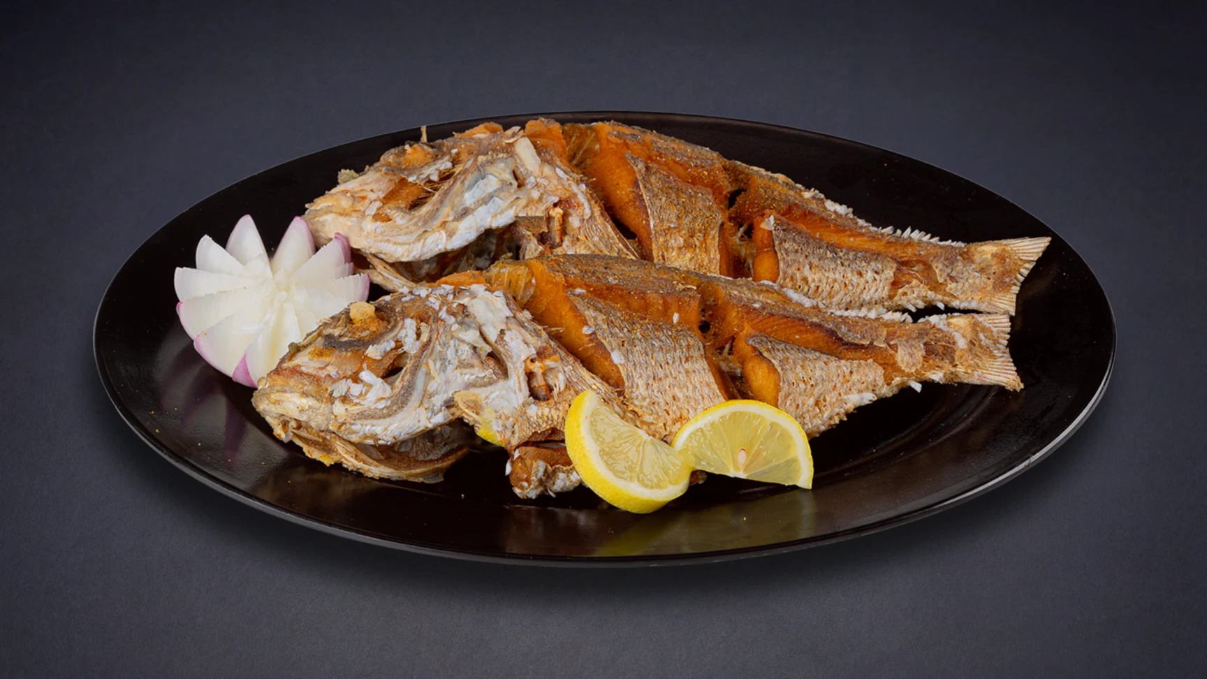 سمك الشعور الطازج المقلي بتتبيلة الثوم والليمون.